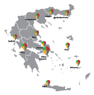 The 11 fish wharves-branches supplying the country with fresh, qualitative products and they extend all over Greece; from Crete to Alexandroupolis and from Kalymnos to Preveza.