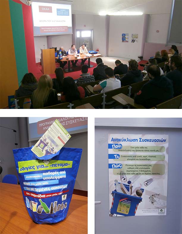 Συγκεκριμένα, ο Αντιδήμαρχος της Δ/νσης Καθαριότητας και Ανακύκλωσης κ. Σπύρος Κοτζαμάνης, ο Προϊστάμενος σχεδιασμού κ. Παύλος Κωνσταντινίδης και ο Διευθυντής Καθαριότητας κ. Βαγγέλης Ζαράνης ενημέρωσαν τους εμπόρους της Αγοράς του Καταναλωτή και τους εργαζόμενους του ΟΚΑΑ για τη σωστή χρήση των κάδων της ανακύκλωσης και τα οφέλη της για το περιβάλλον. Την εκδήλωση χαιρέτησε και συντόνισε, ο Πρόεδρος του Δ.Σ. του Ο.Κ.Α.Α. Α.Ε. κ.Δημήτρης Κουτσοθεόδωρος.